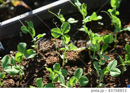 何らかの豆類の苗 グリンピース系の前の苗 冬に植える