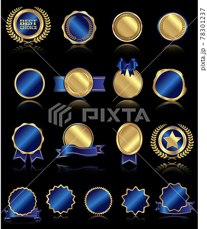 ランキング アイコン セット ゴールド リボン 旗 月桂冠 月桂樹 メダル 王冠 星