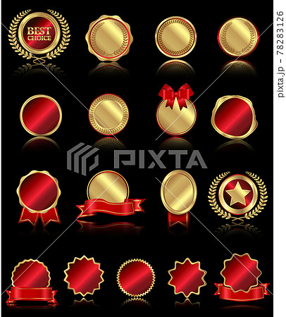 ランキング アイコン セット ゴールド 赤 光沢 リボン 旗 月桂冠 月桂樹 メダル 王冠 星