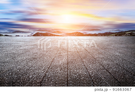 延時拍攝瀝青路面與山脈適用汽車廣告背景圖