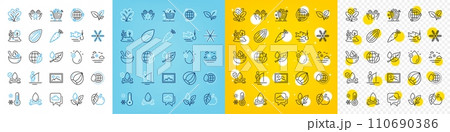 Icons pack as Wind energy, Plants watering and Apple line icons for app include Waves, Juice, Pecan nut outline thin icon web set. Water glass, Sunny weather, Sun protection pictogram. Vector