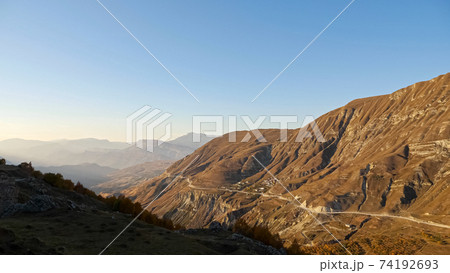 Mountains in the fall. Yellow trees, clear skies