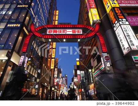 日本の東京都市景観・歌舞伎町一番街の夜景