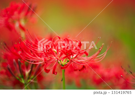 秋色の調べ 背景の柔らかな彩りが、一輪の赤を引き立てる。