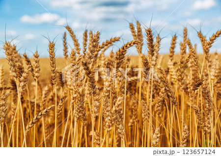 Golden wheat field. Growth nature harvest. Agriculture farm.