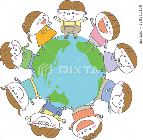 みんなで守ろう地球!輪になって遊ぶ子どもたちのイラスト