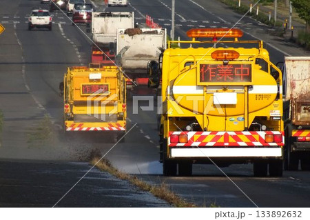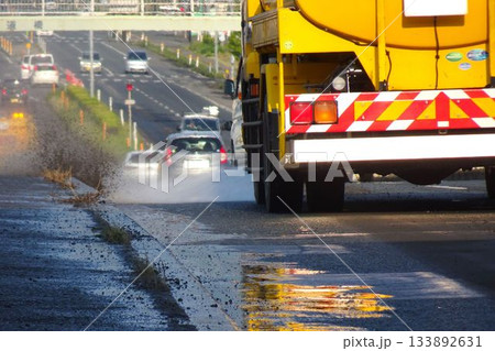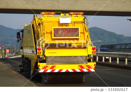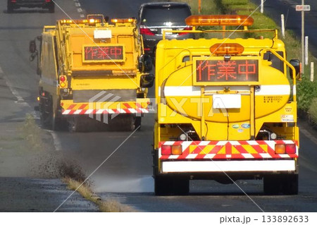 はたらく車 道路清掃中の道路清掃車ロードスイーパー