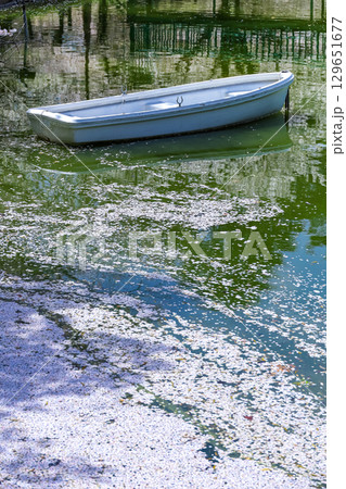 大宮公園舟遊池のボートと花筏