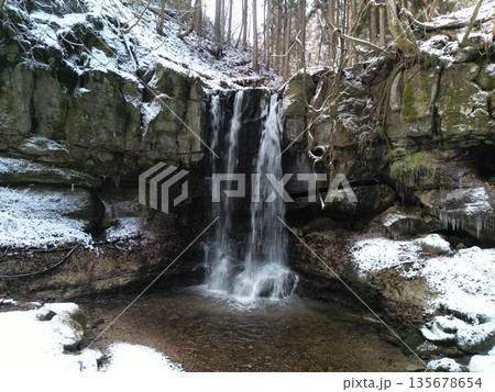 小僧不動の滝の雪景色 VR写真