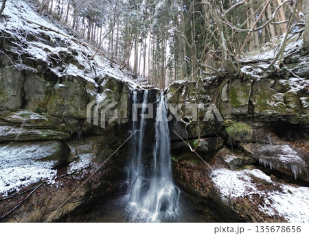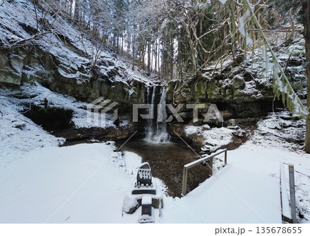 小僧不動の滝の雪景色 空撮