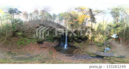 晩秋の小僧不動の滝 空撮 VR写真