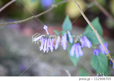 青紫の細長い唇形花を咲かせるセキヤノアキチョウジ 11月上旬撮影