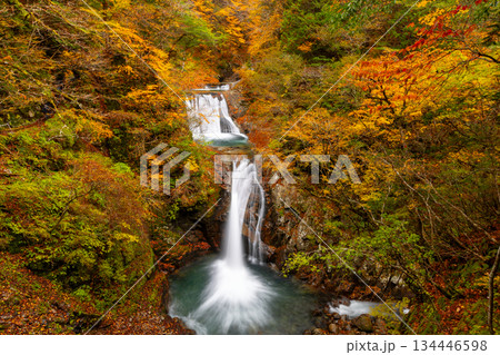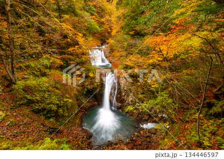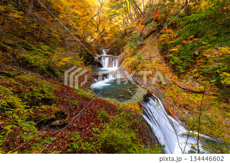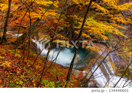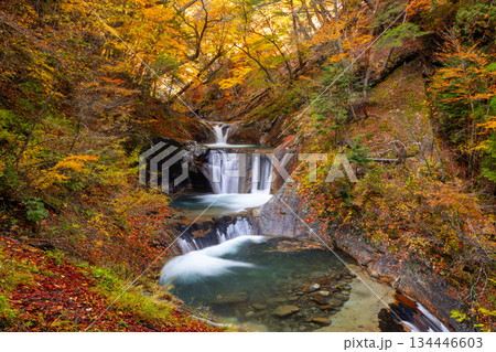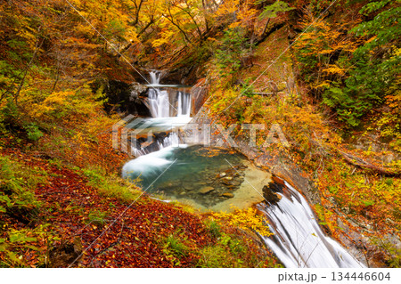 山梨県山梨市三富川浦 紅葉の西沢渓谷七ツ釜五段の滝