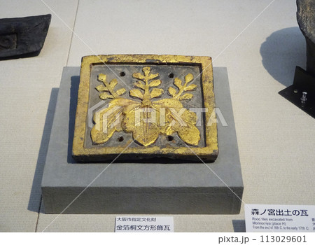 大阪市出土 豊臣期 金箔桐文方形飾瓦
