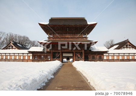 永平寺 雪の祠堂殿、山門 大雪の冬