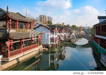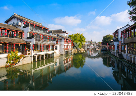 上海、七宝、運河沿いの家並、蒲匯塘橋、七宝教寺、江南水郷、古鎮(古い街並みの残る風情ある町)