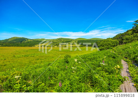 日本 長野県諏訪郡の八ヶ岳中信高原国定公園中部の霧ヶ峰にある八島ヶ原湿原
