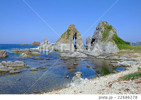 新潟県佐渡市 佐渡島七浦海岸の夫婦岩