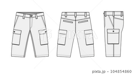 ショートパンツ ( ハーフパンツ ) ベクターテンプレートイラスト ( フロント・バック・サイド)