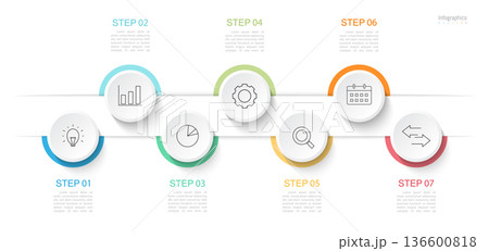 Infographic 7 options design elements for your business data. Vector Illustration.
