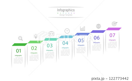 Infographic 7 options design elements for your business data. Vector Illustration.