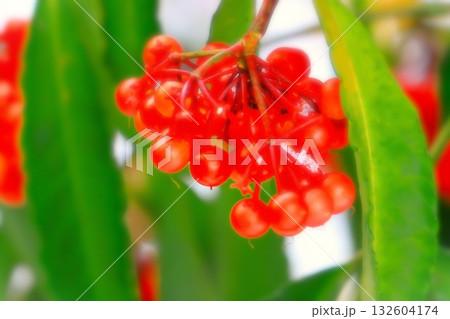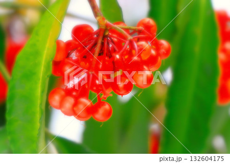 冬に咲く赤いセンリョウの実 (千両)冬、十二月
