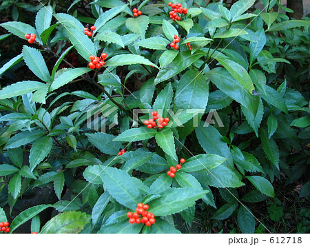 冬に咲く赤いセンリョウの実 (千両)冬、十二月