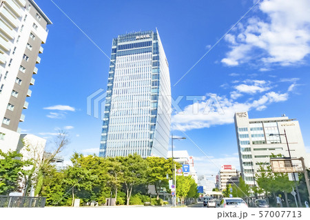 新潟駅前 東大通りのオフィスビル街 (秋)