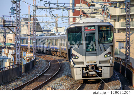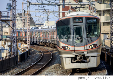 大阪環状線、寺田町駅付近のカーブを走る225系電車