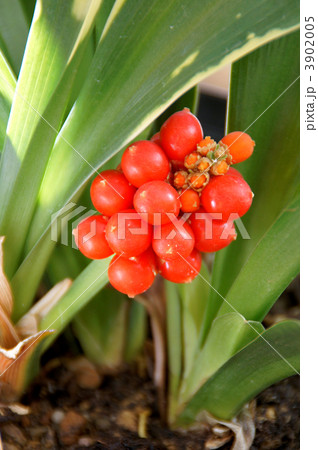 赤く熟した万年青の実