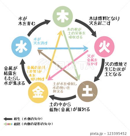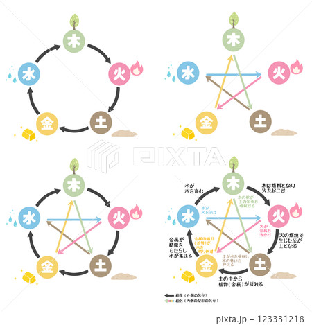 五行図 相生・相剋の解説 イラストセット