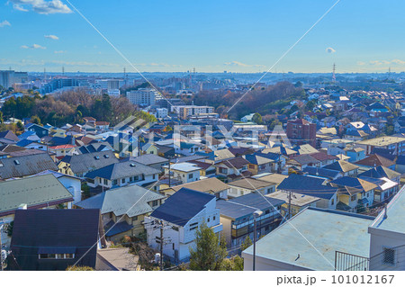 冬の神奈川県川崎市麻生区 新百合山手中央通りを北側(万福寺4,6丁目など)に見る