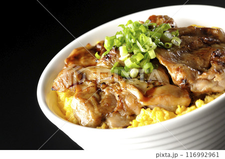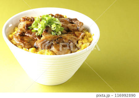きじ焼き丼、焼き鳥丼、親子丼、白背景で撮影