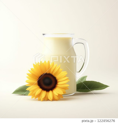Pitcher of Sunflower Milk with Fresh Sunflower Isolated
