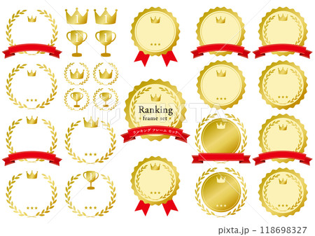 ランキングにまつわる月桂樹や王冠のフレームイラストのセット