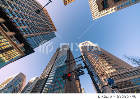 日本の東京都市景観 東京・「大手町駅前」交差点からオフイスビル群を望む