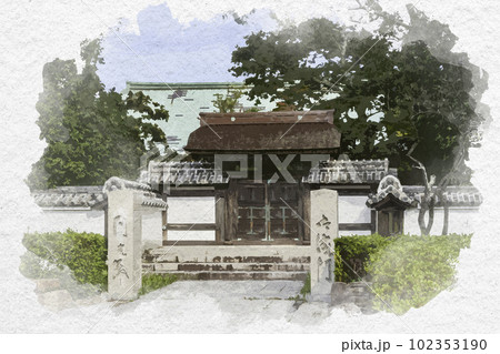 水彩画風 四国八十八箇所84番 屋島寺 御成門 香川県高松市