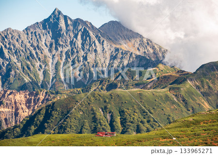 双六小屋から見る三俣蓮華岳 北アルプスの双六岳の登山