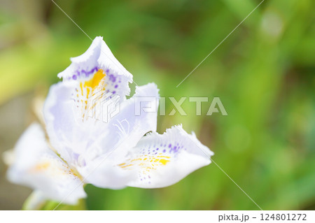 花びらに濃い紫と黄色の模様が特徴のシャガの花【アヤメ科】