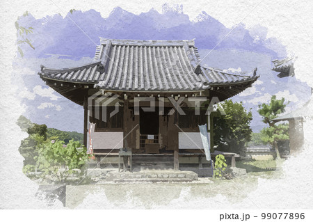 水彩画風 橘寺 本堂 奈良県明日香村