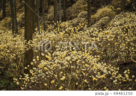 【富士山素材】白糸自然公園から見る富士山とミツマタの花【静岡県】