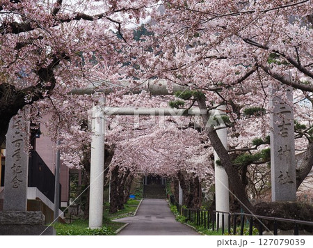 満開の桜と住三吉神社(北海道函館市)