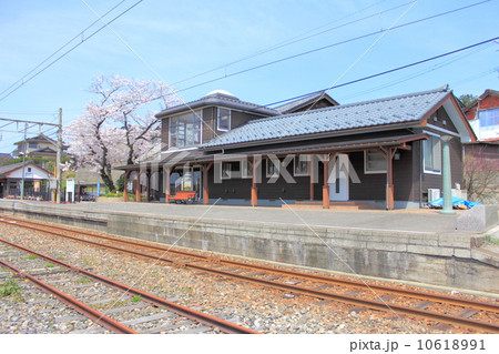 桜咲く春の三国港駅