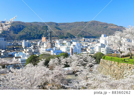 【岡山県】津山城の満開桜と津山市の町並み(鶴山公園)
