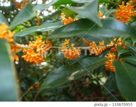 秋に咲くオレンジ色のキンモクセイの花
