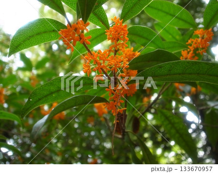 光を浴びるオレンジのキンモクセイ13