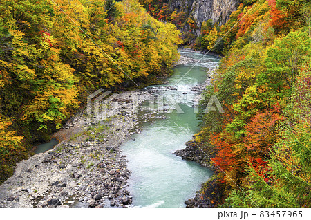 見頃を迎えた沙流川渓谷の紅葉(北海道 日高)