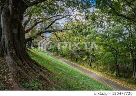 晩秋の背割堤の大木 エノキ 京都府八幡市