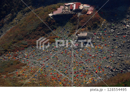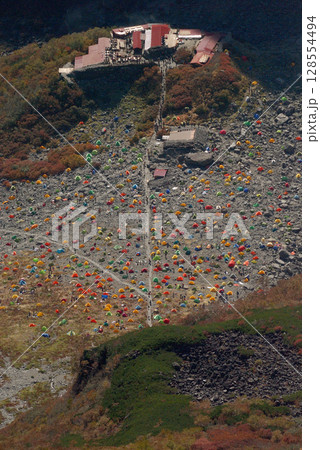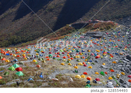 Tent site in Karasawa 錦秋の涸沢カールに広がるテント村~北穂高岳からの俯瞰