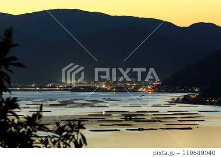 牡蠣筏が浮かぶ 夕暮れ時の瀬戸内風景